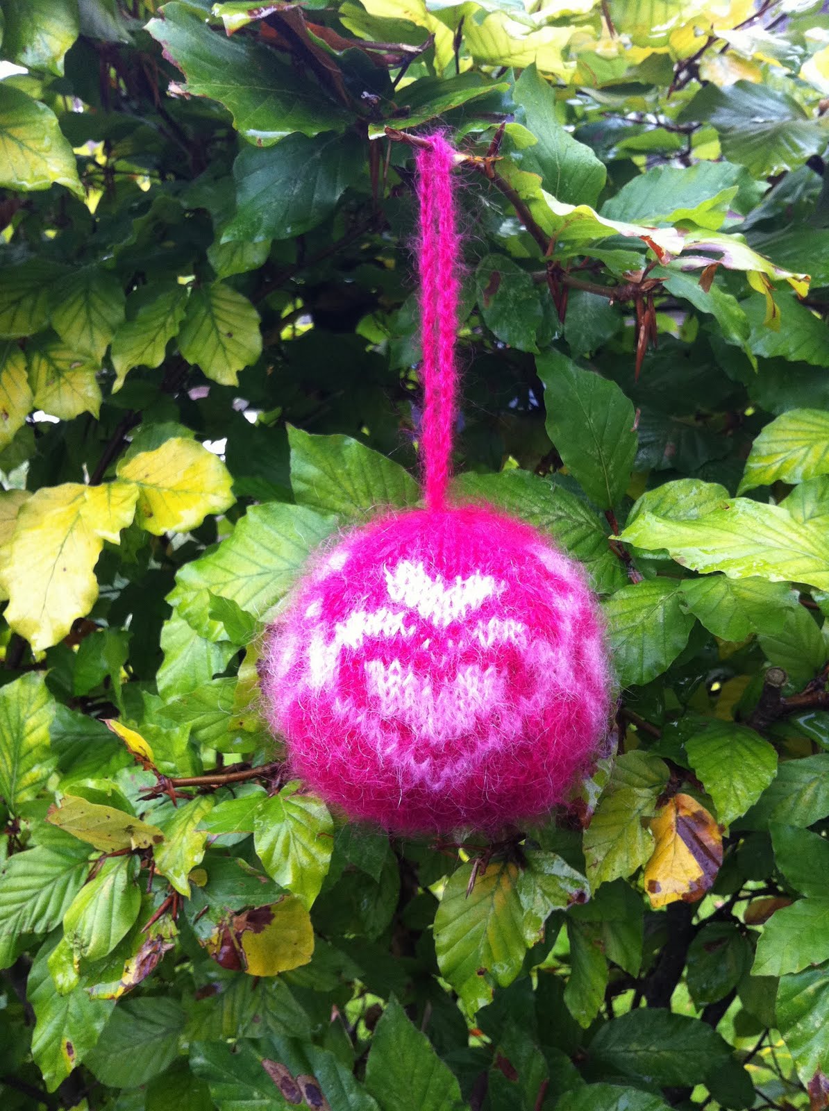 Maar toen ik de uitnodiging van Tijm kreeg om deel te nemen aan een kerstballen-brei-workshop in de plaatselijke boekenwinkel moest ik er natuurlijk even eentje uitproberen.